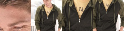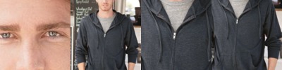 - Contrast sleeves, hood and flat drawcord with sewn eyelets