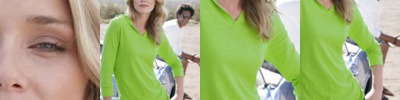 Soften your outlook in touchable jersey slub with trendy 3/4 sleeves.